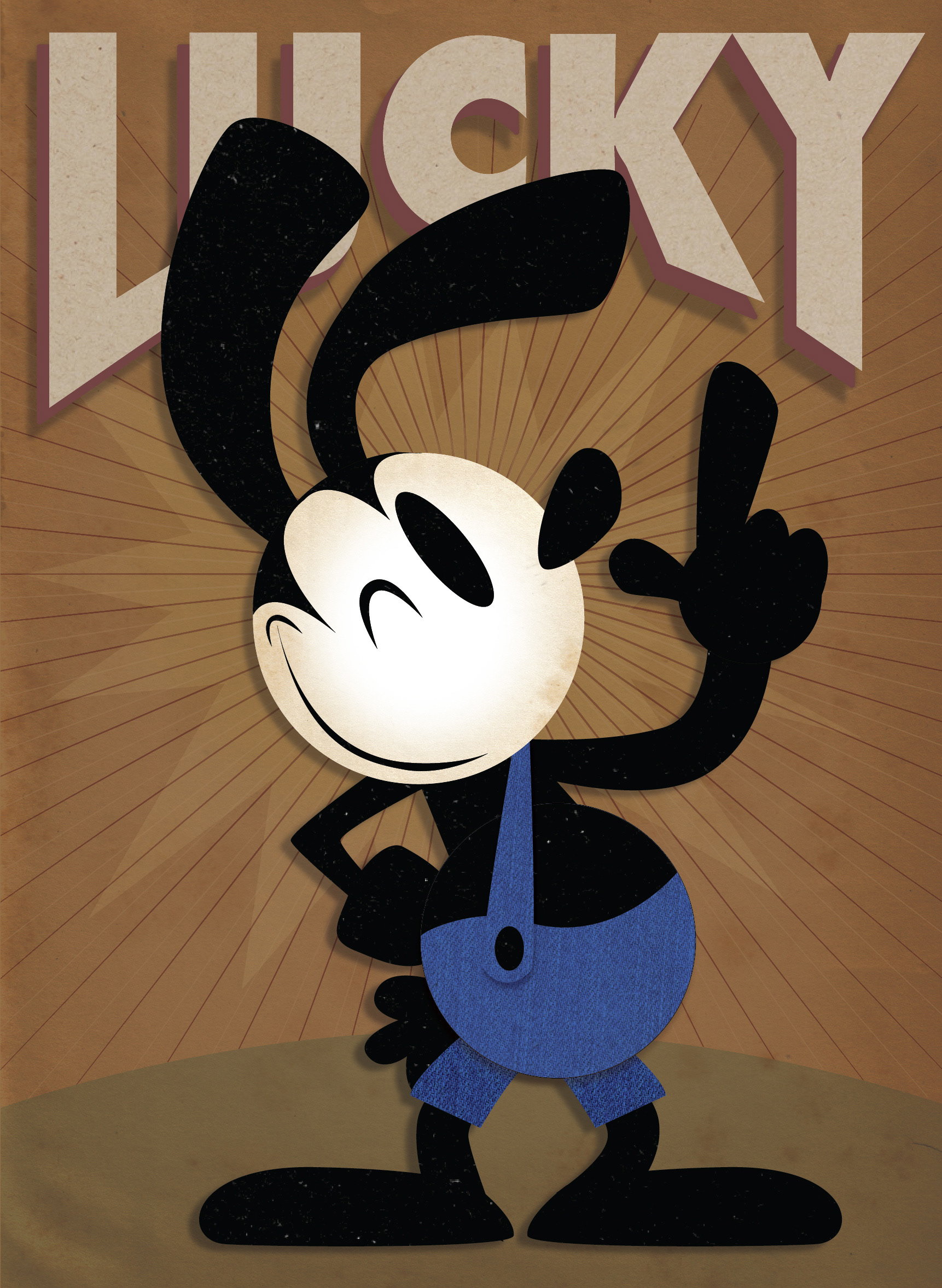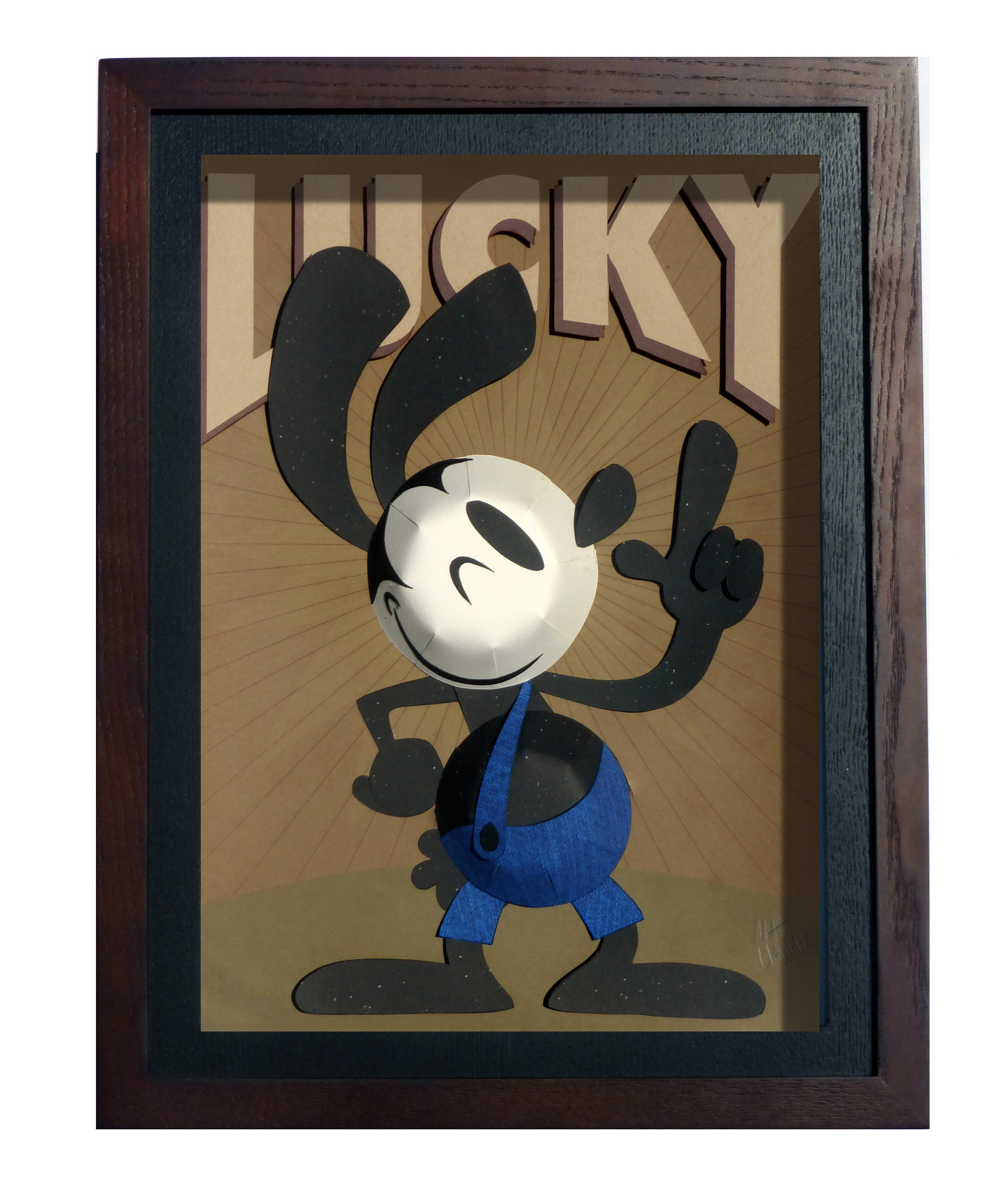 Lucky a 3D shadowbox and 2D print of Oswald the Lucky Rabbit for the Wonderground Gallery at Downtown Disney.
