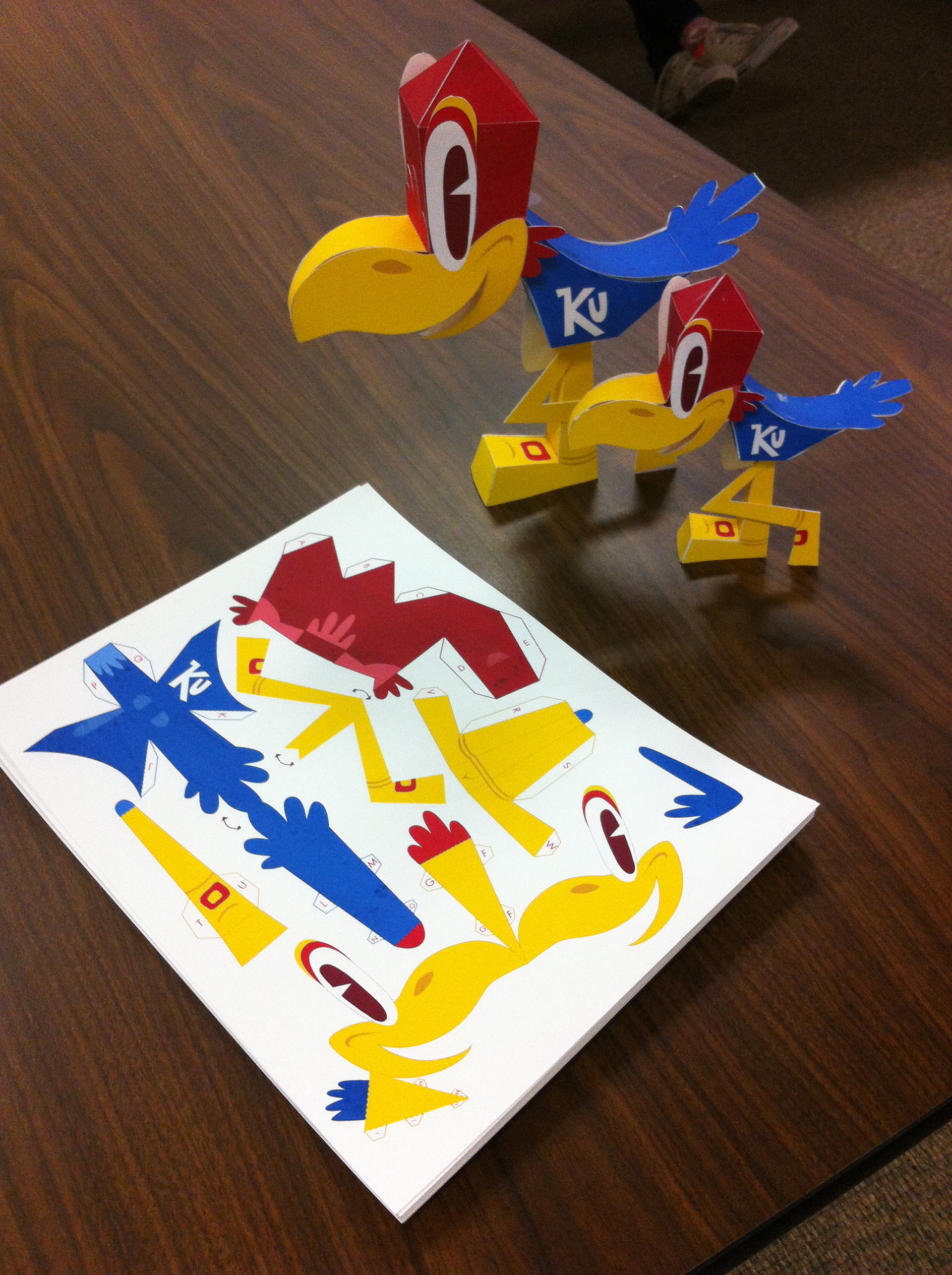 I had the pleasure of giving a little talk/workshop at University of Kansas as part of KU Design Week. I always enjoy talking with students about my work and after that we had a little hands on craft time were we all built little paper Jayhawks I designed. Here are some pics from the event thanks to Sydney and KU for the invite.